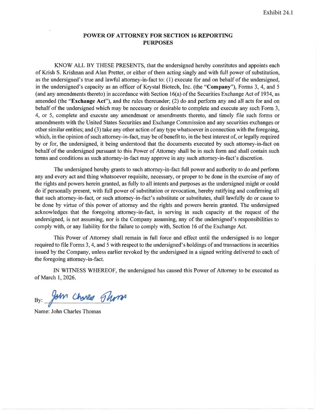 | Exhibit 24.1 Power of Attorney |